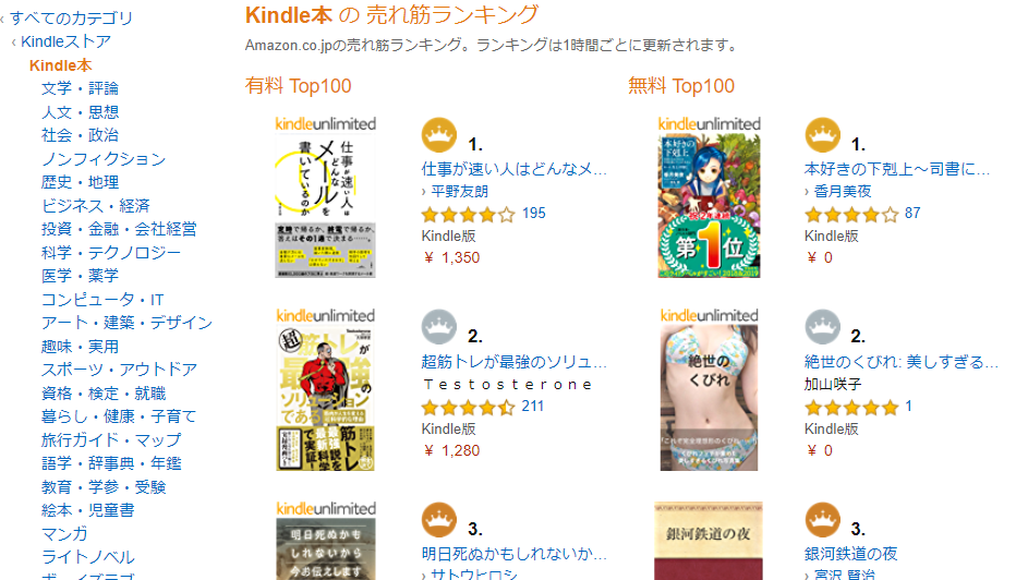 2019/03/10 Category : Kindle本 の 新着ニューリリース kindle本の売れ筋ランキング 売れ筋ランキングAmazon内で紹介しているさまざまなランキングをわかりやすくご案内します。詳しくはこちら 詳しくはこちらKindle本の売れ筋ランキングについてこれらのリストには、売れ筋ランキング商品が表示されます。1時間ごとに更新されます。 日本国外にお住まいのお客様の場合、ご利用いただけるKindle本と価格が異なります。